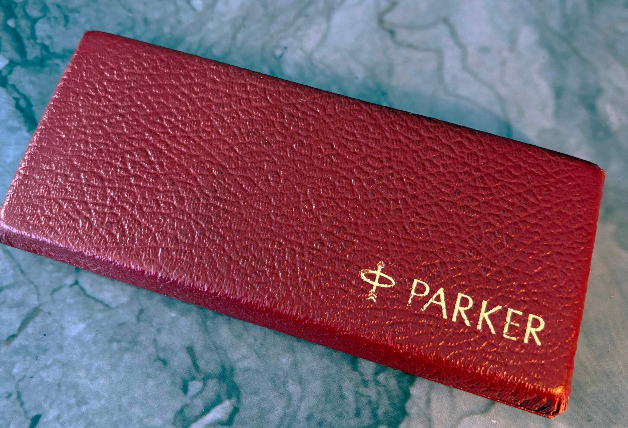 Parker , hard pen box, double. Red/Brown. Vintage 1960's