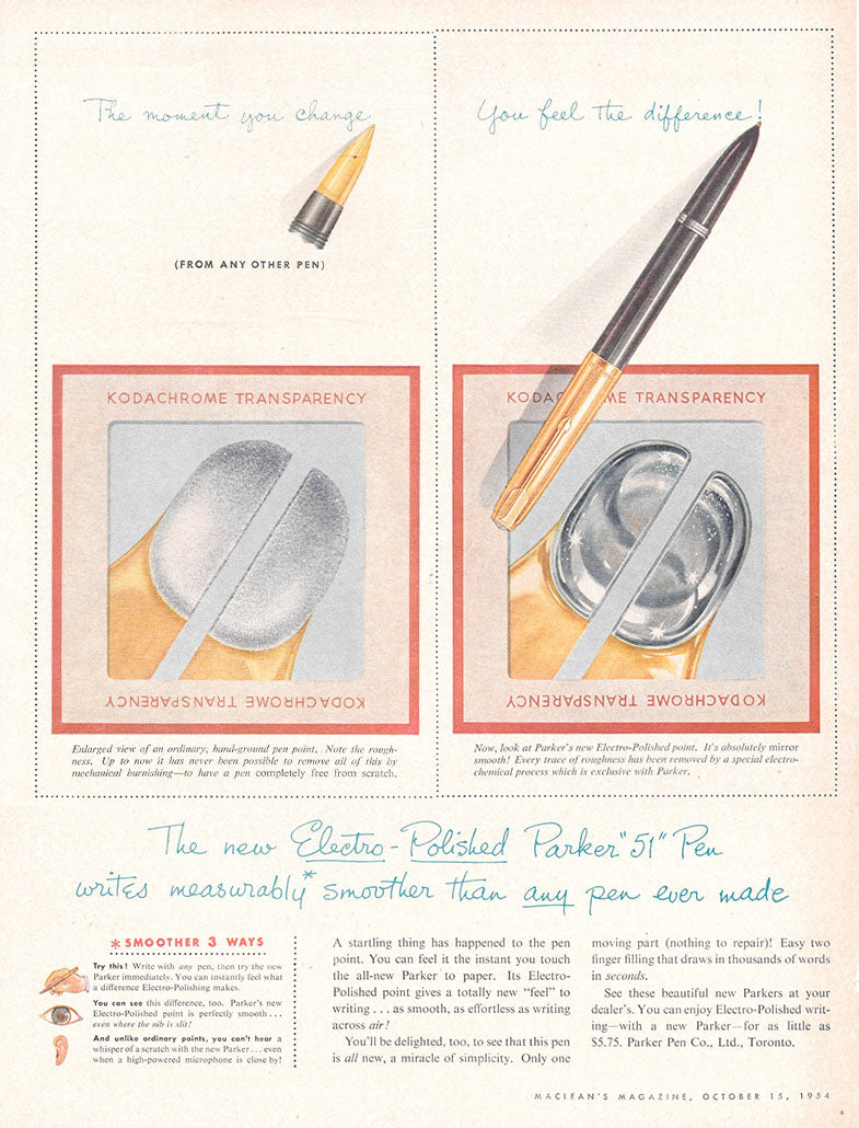 The new Electro-Polished Parker "51" Pen writes measurably smoother ...