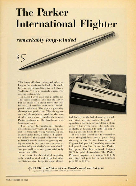 Parker Flighter Stainless steel Pencil .09mm lead. Clip with iconic arrowhead design, propel- repel mechanism 1960's